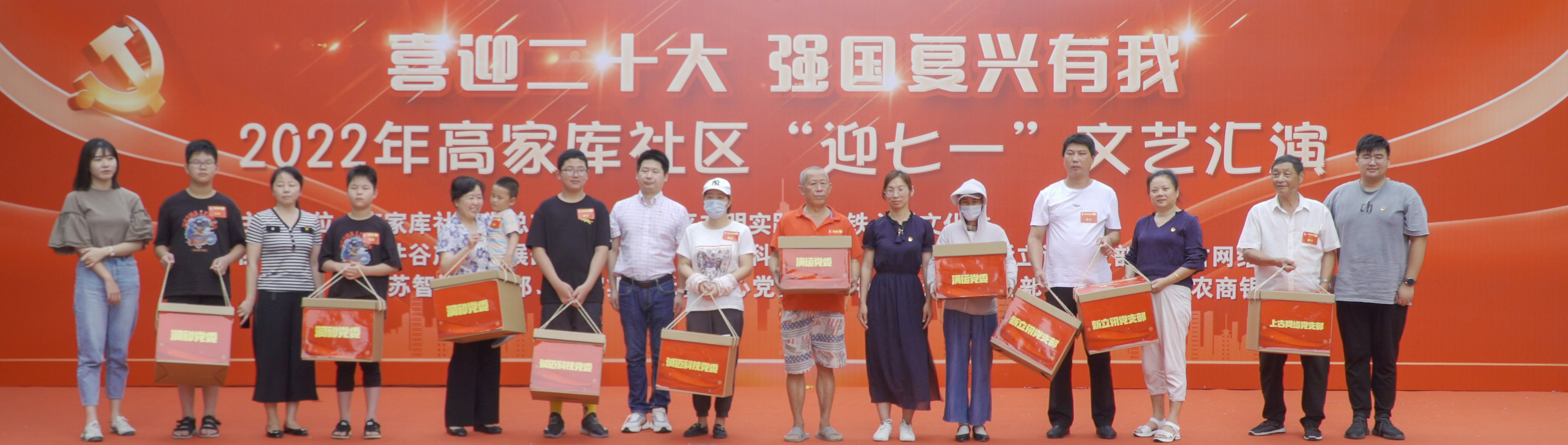 為迎接中國共產黨二十大召開,展現高家庫社區居民朝氣蓬勃、積極向上、文明和諧的精神風貌。2022年6月27日,高家庫社區黨總支聯合新立訊黨支部、軟件谷產業發展委、潤和黨委等共建單位開展了“喜迎二十大 強國復興有我”慶七一文藝匯演活動,以積極飽滿、斗志昂揚的精神,共同喜迎二十大的勝利召開。