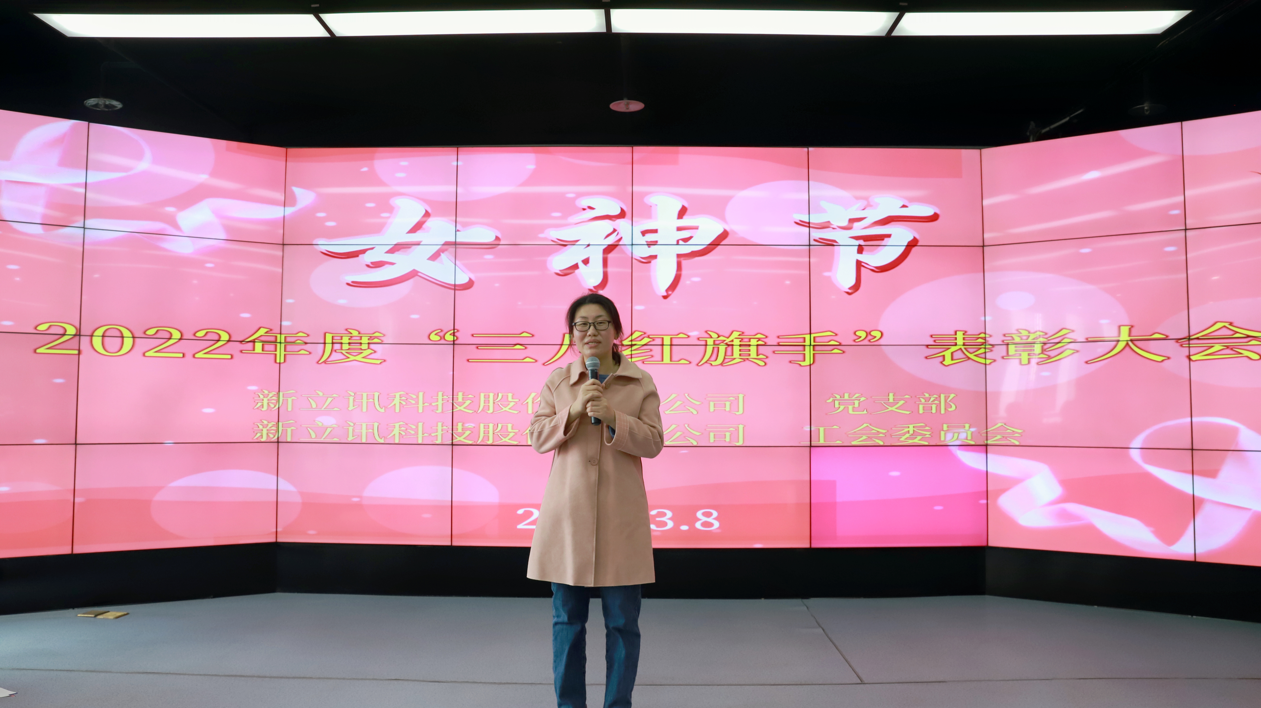 為豐富新立訊女職工的文化生活,表彰先進,增強公司凝聚力,在“三八”國際勞動婦女節來臨之際,新立訊黨支部及工會委員會在總部隆重召開三八國際婦女節表彰大會,大會由新立訊監事會主席、工會主席王宗蘭主持。